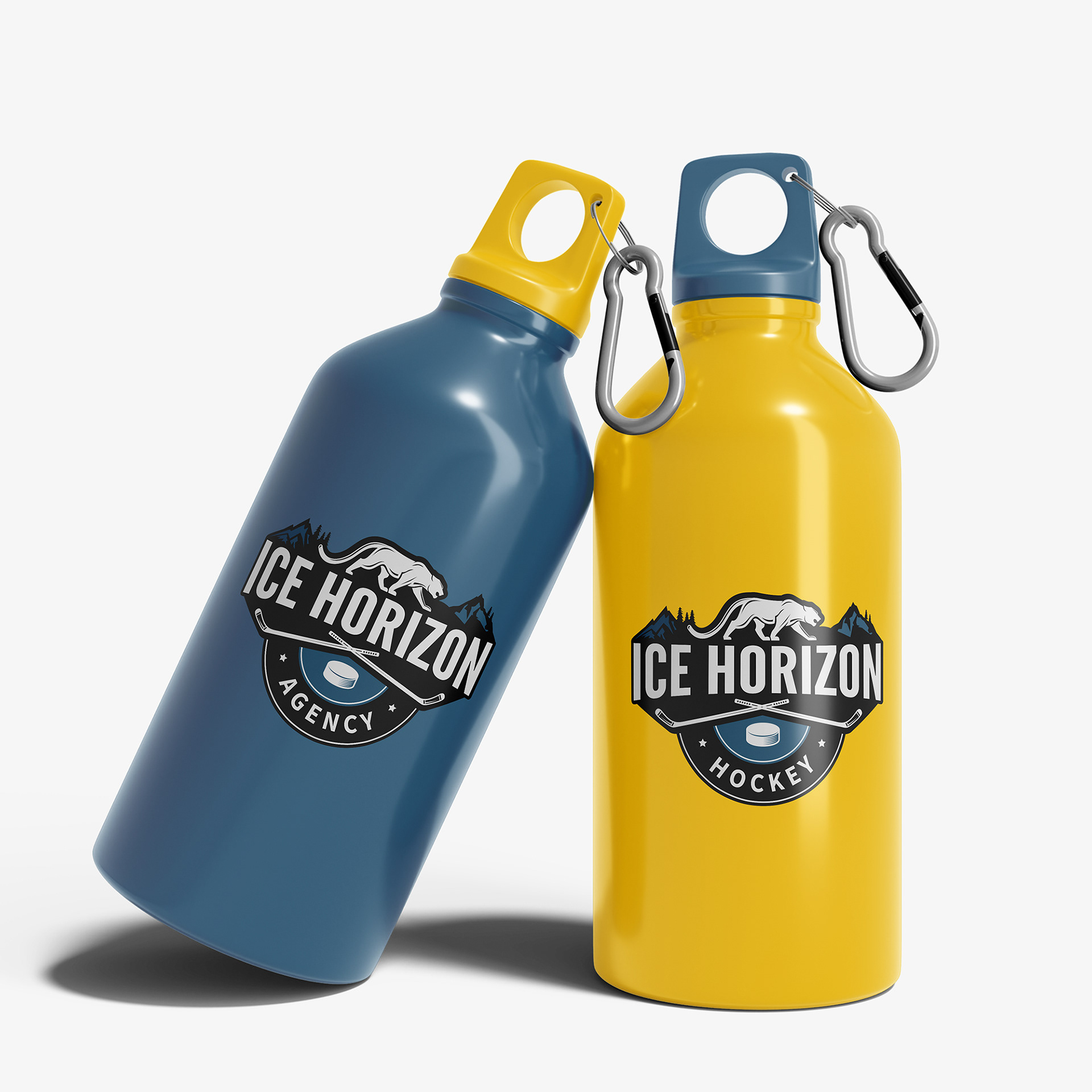 ICE HORIZON (49) - organisateur de séjours sportifs à l'étranger pour hockeyeurs: Création de 2 identités visuelles, Hockey & Agency - logo, charte graphique, supports de com, produits dérivés/ Design by Anne Leroux® 2023