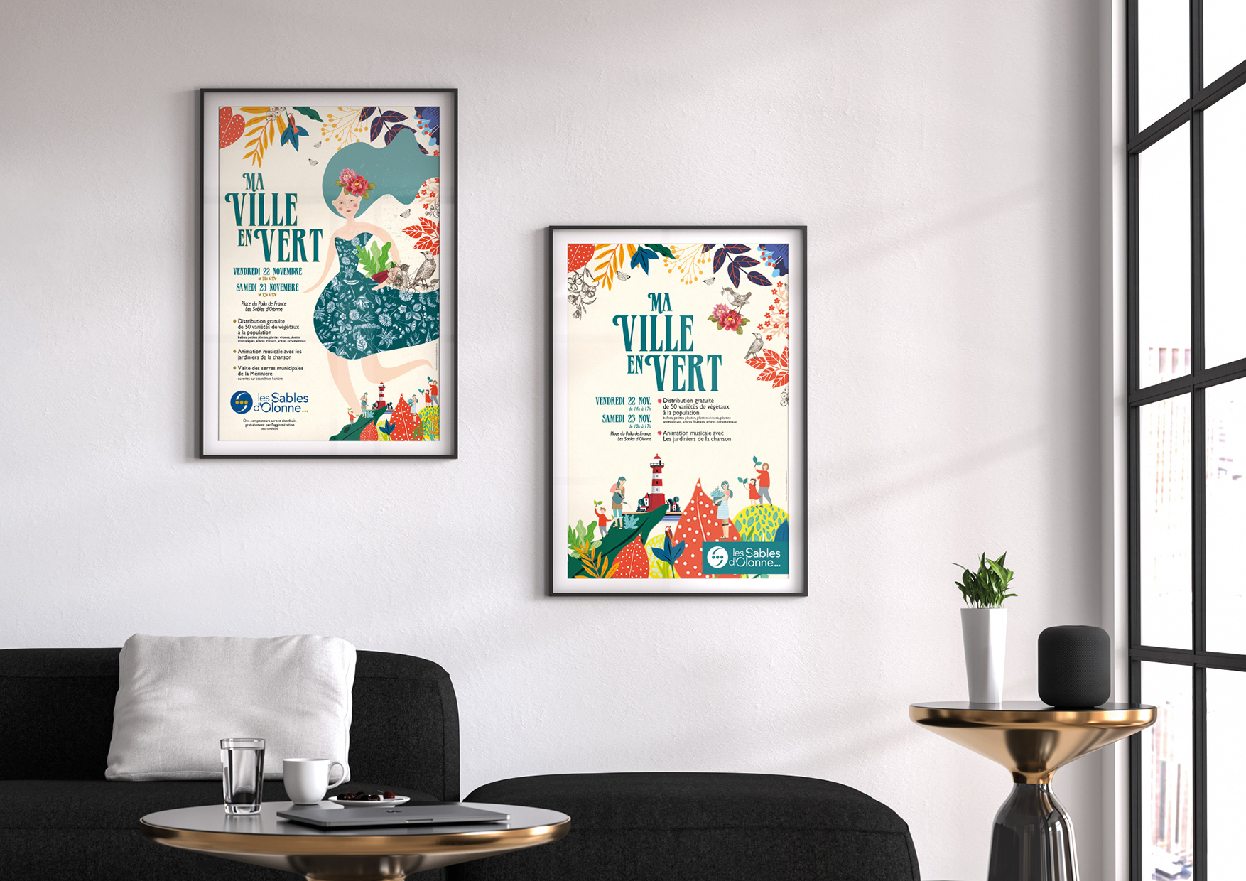 VILLE DES SABLES D'OLONNE (85) : Création d'affiches sur le thème "Ma ville en vert"   / Design by Anne Leroux® 2019