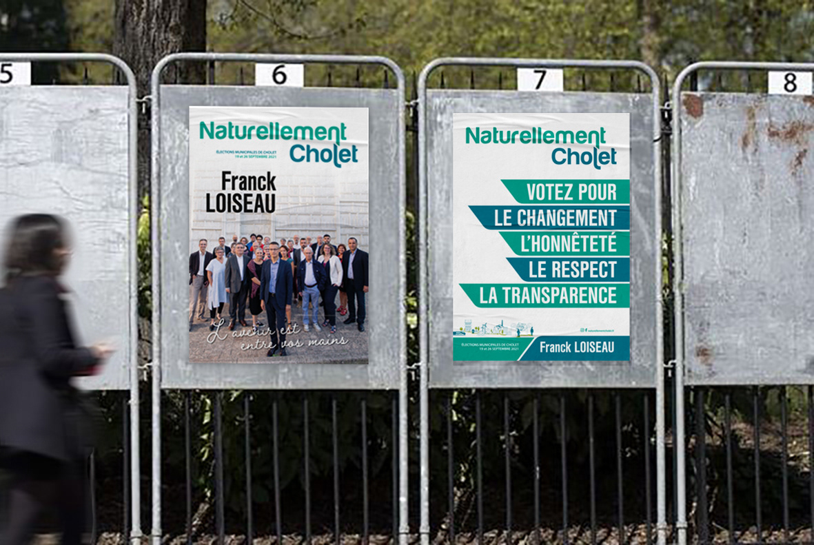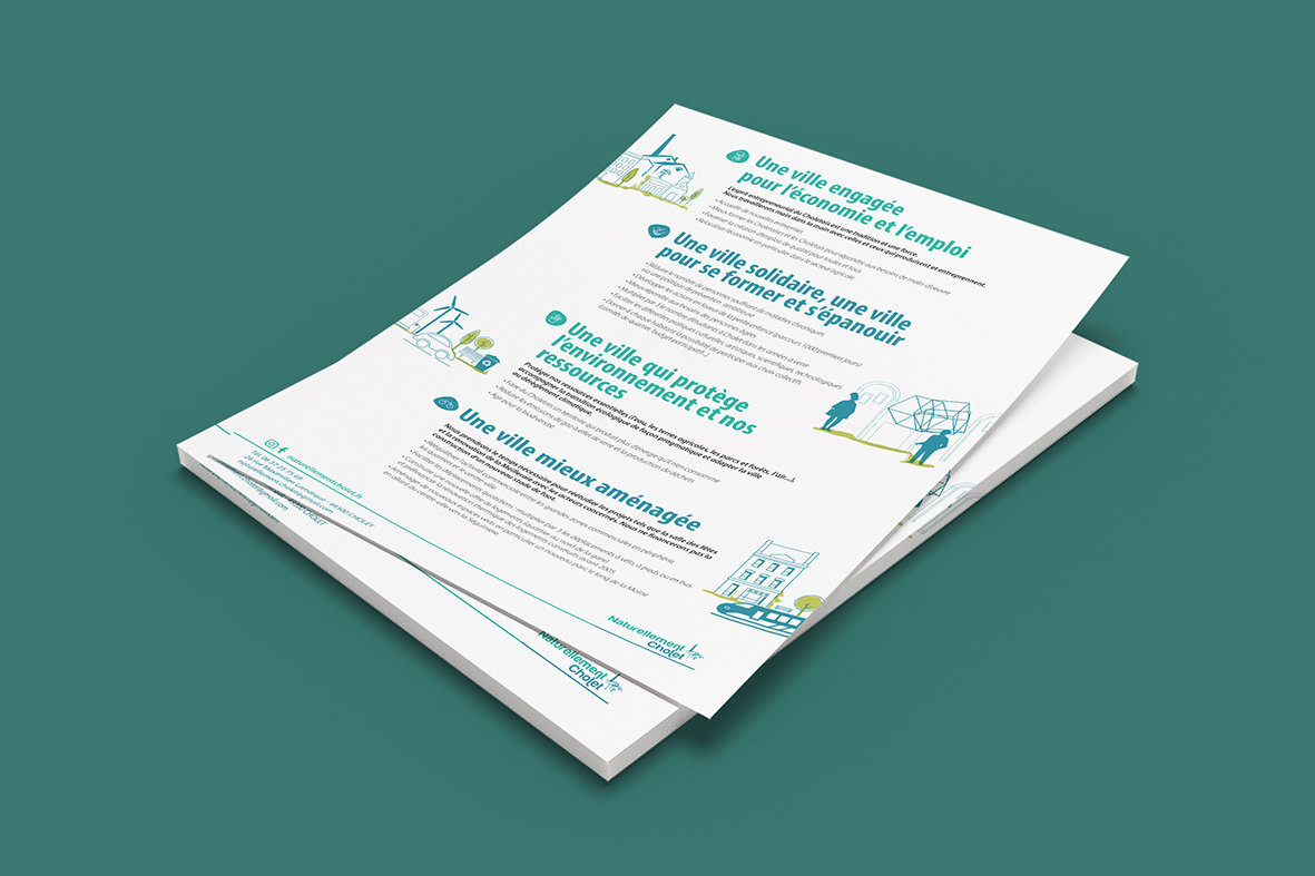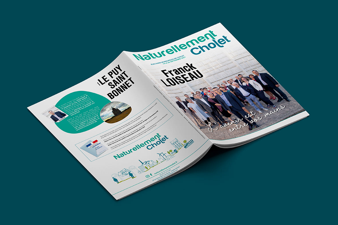 NATURELLEMENT CHOLET - Elections municipales septembre 2021 (Cholet 49) : Création de l'identité visuelle (logo) et supports imprimés : programme, profession de foi, affiche, bulletin de vote... / Design by Anne Leroux® 2021
