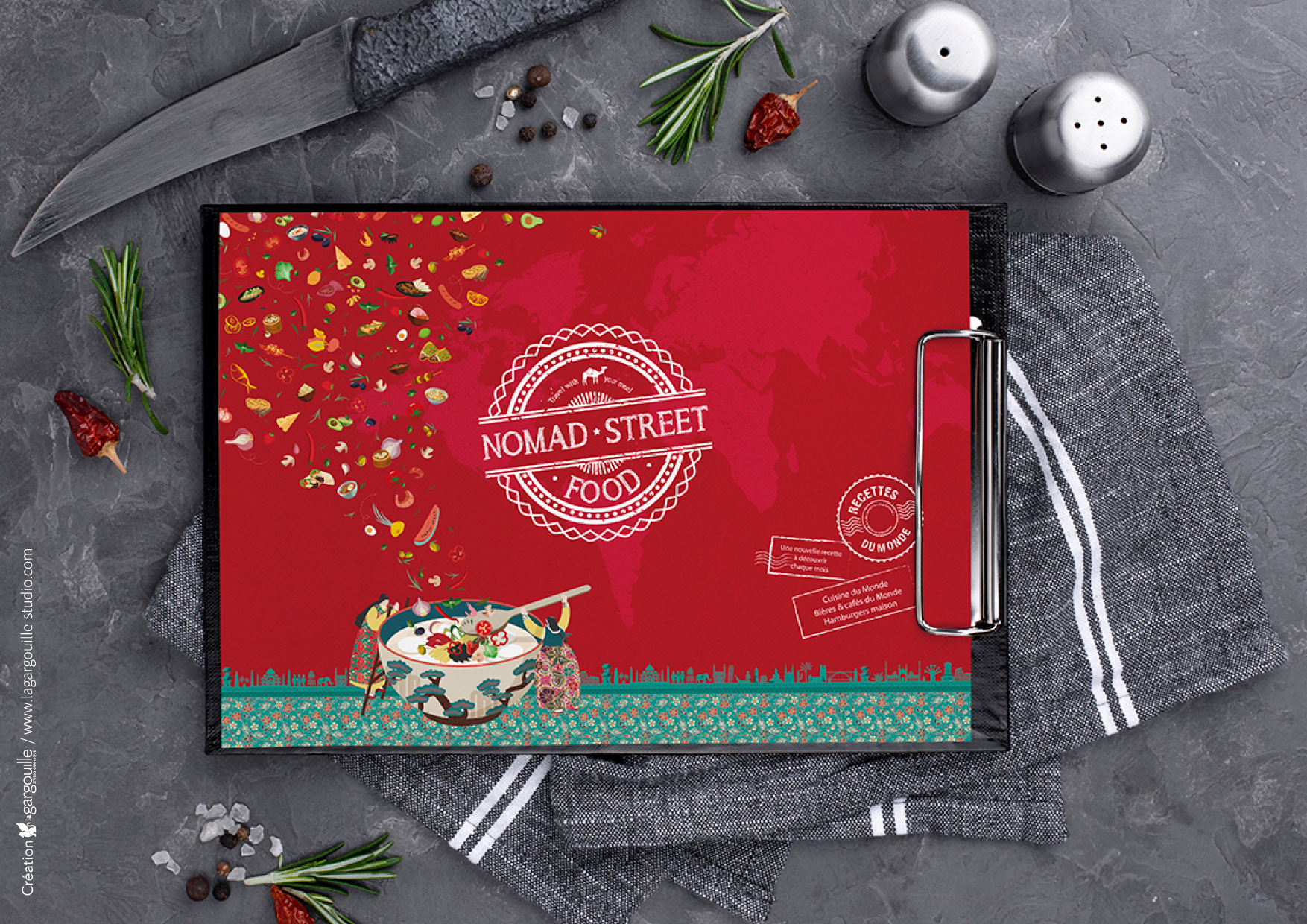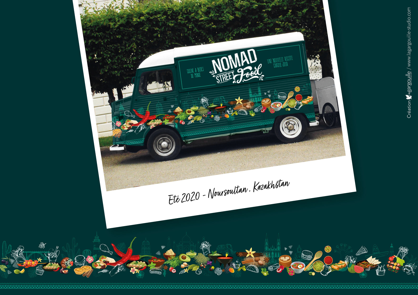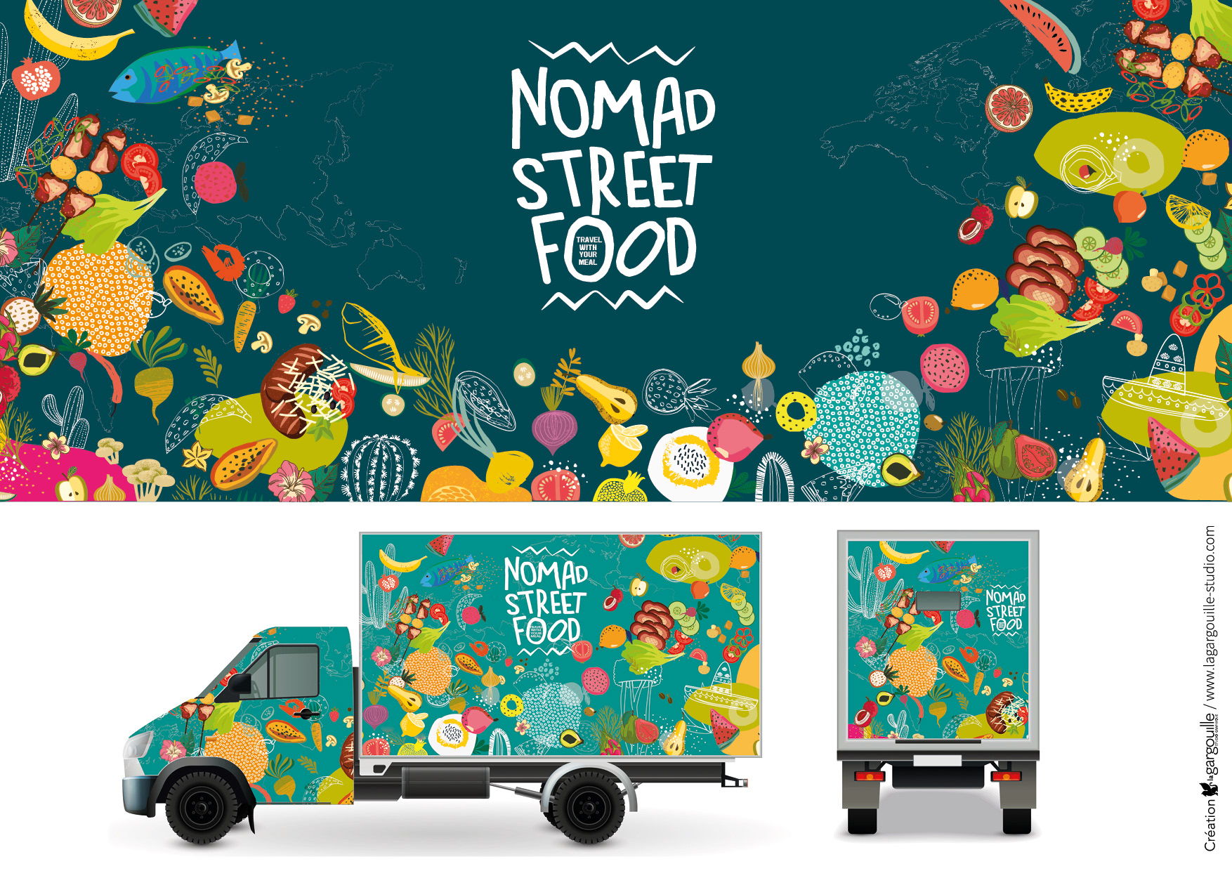 NOMAD STREET FOOD -Travel with your meal / Cuisine du Monde ambulante : création de l'identité visuelle, logo, habillage food truck, décoration, supports de communication / Design by Anne Leroux® 2020